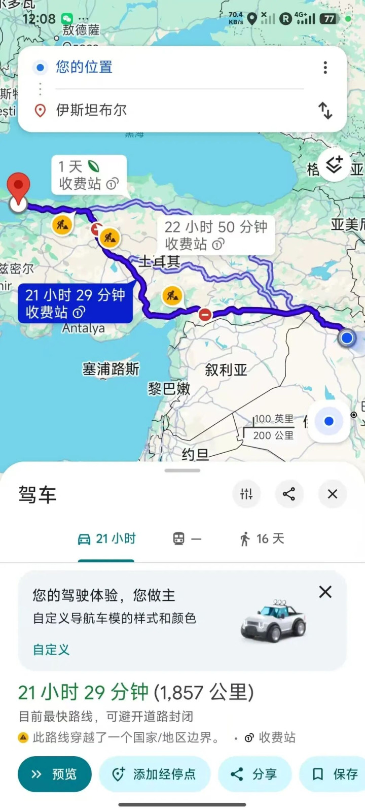 从伊拉克埃尔比勒到达土耳其伊斯坦布尔车程,黄勇鑫提供