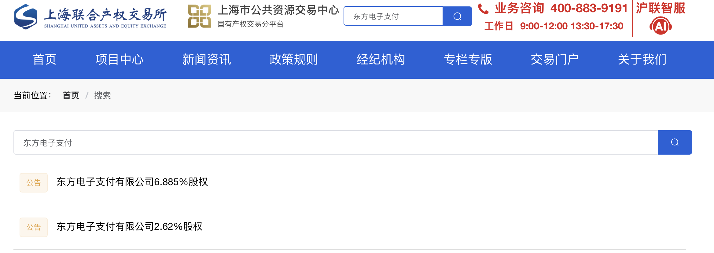 就在今年8月,市场已传出东方电子支付两股东先后公开转让其持有的相应股权。记者从上海联合产权交易所信息发现,东方电子支付2.62%股权转让底价为387.7万元,6.885%股权转让底价为1018.98万元,目前均已于10月31日以底价成交。
