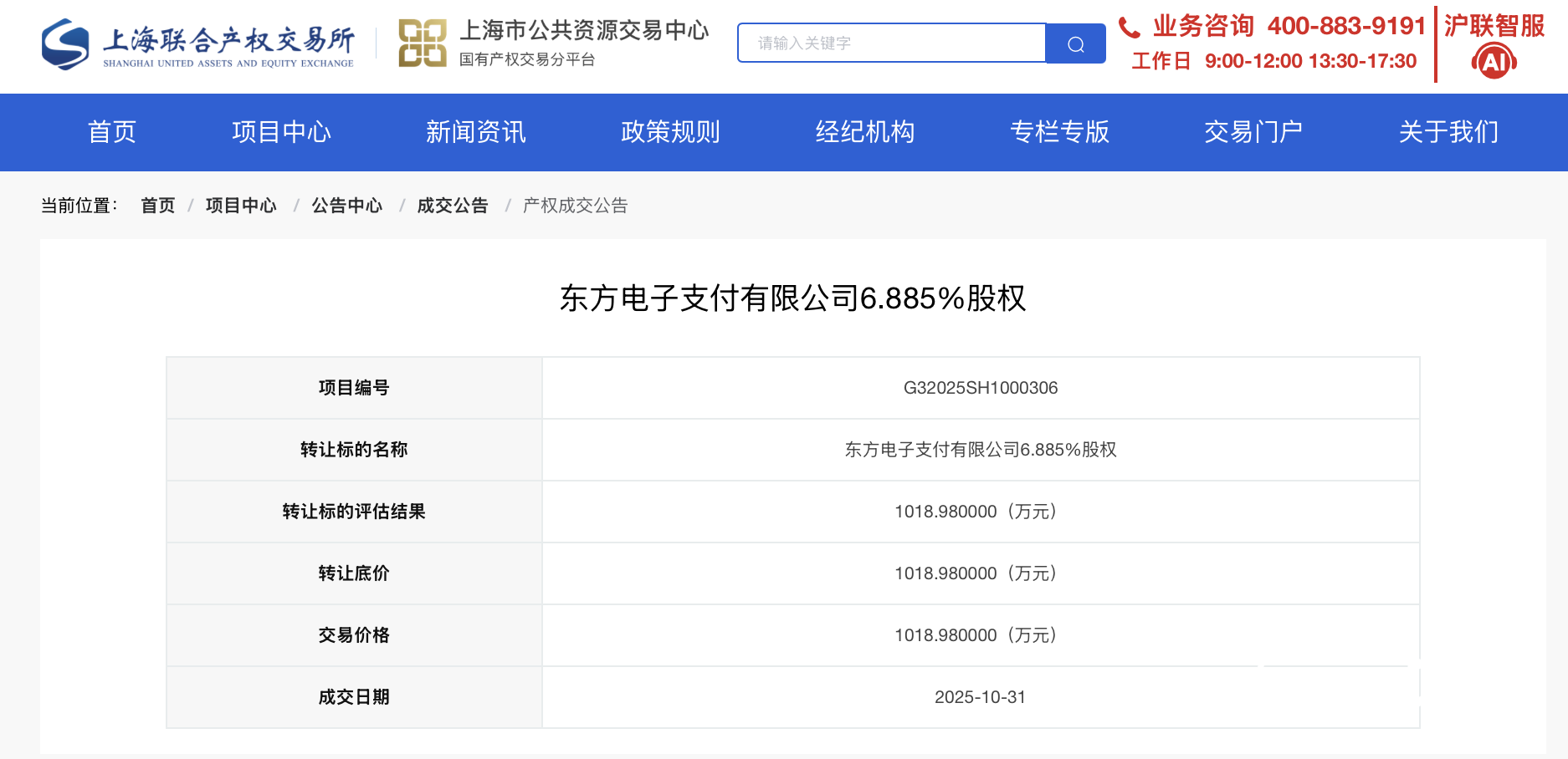 另外,此次股权挂牌信息披露的财务指标数据显示,东方电子支付近年经营情况不容乐观。2024年,东方电子支付营收约888万元,净利润亏损约800万元;截至2025年7月31日,东方电子支付营收376.72万元,净利润亏损521.7万元。