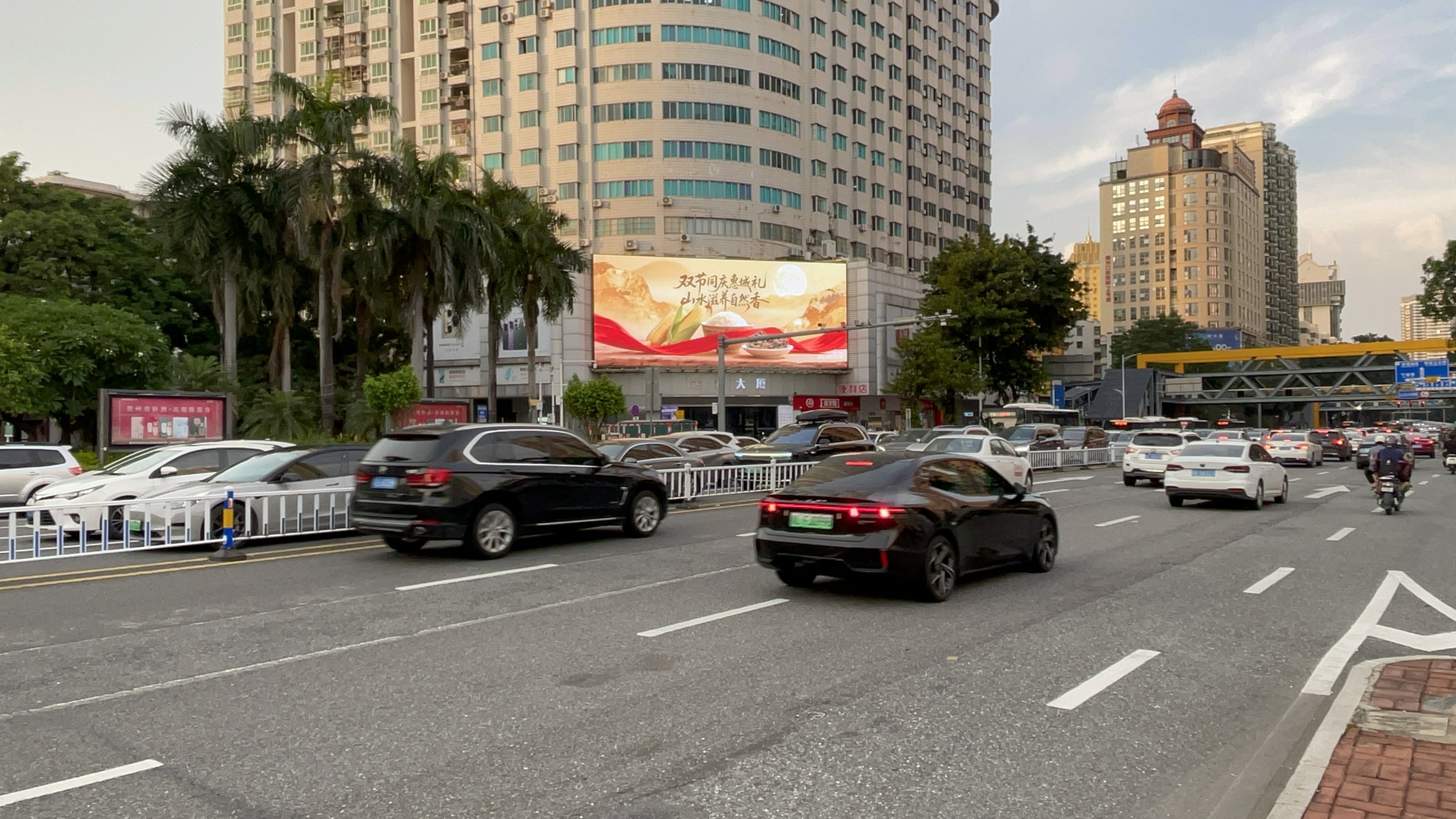 国庆之夜,惠州市区流光溢彩。达利大厦与源东大厦两大地标建筑的户外LED巨屏同步点亮启远网 ,“双节同庆惠城礼,山水滋养自然香”的主题宣传海报在夜色中熠熠生辉,向市民与游客展示来自惠城山水的自然厚礼。本次亮屏活动从10月1日持续至7日,既是惠城区借助“双节”开展农产品品牌传播的重要举措,也为节日增添了浓厚的喜庆氛围。