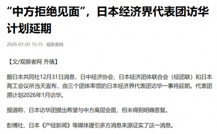 谁能想到,2026年刚开头,中日关系就扔出了一颗“惊雷”——延续13年的日本经济界访华行程,直接告吹了!